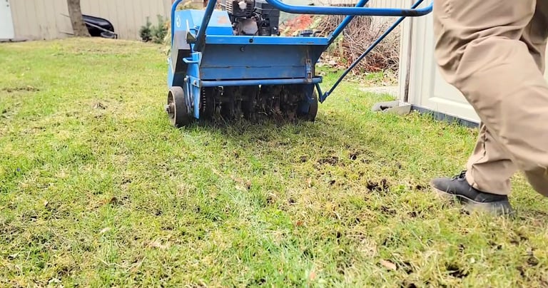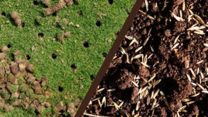 A process that punches small holes in the soil to relieve compaction, allowing air, water, and nutrients to reach the grass roots more effectively, leading to deeper root growth, better nutrient absorption, improved drainage, and a thicker, healthier lawn with better drought and heat tolerance.